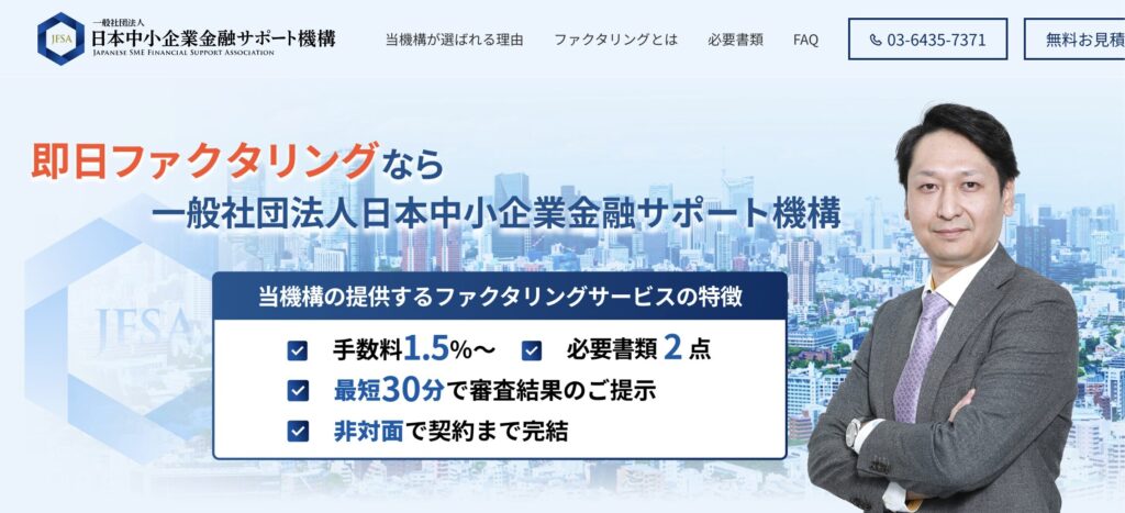 日本中小企業金融サポート機構は、中小企業・個人事業主の資金調達を支援する一般社団法人が運営するファクタリングサービスです。