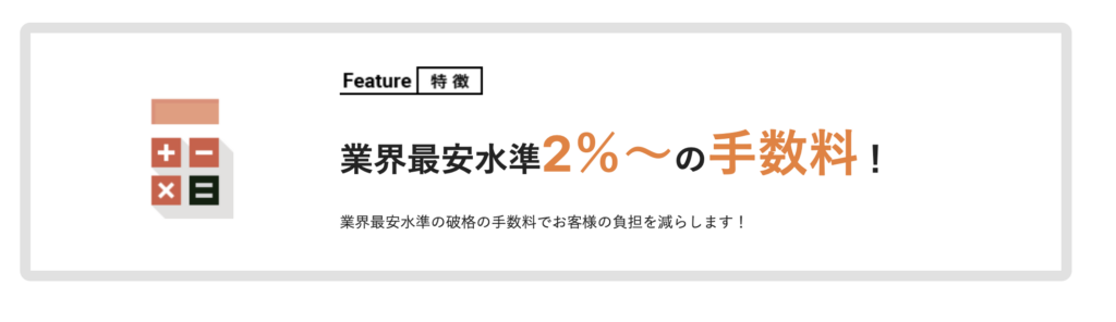 手数料は「2%〜」とされていますが、上限は明示されていません。