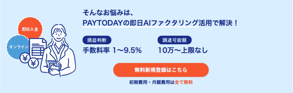 余計なコストをかけずに、取引先に知られるリスクもなく、スピーディーに資金調達を進められる点は、PayTodayを選ぶ大きな理由のひとつといえます。